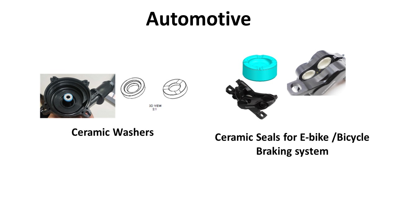 Typical Normal applications are ceramic washers, ceramic battery caps, ceramic seals for E-bike/ Bicycle Braking System.