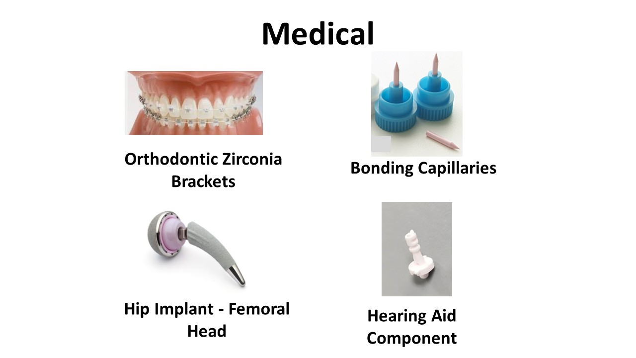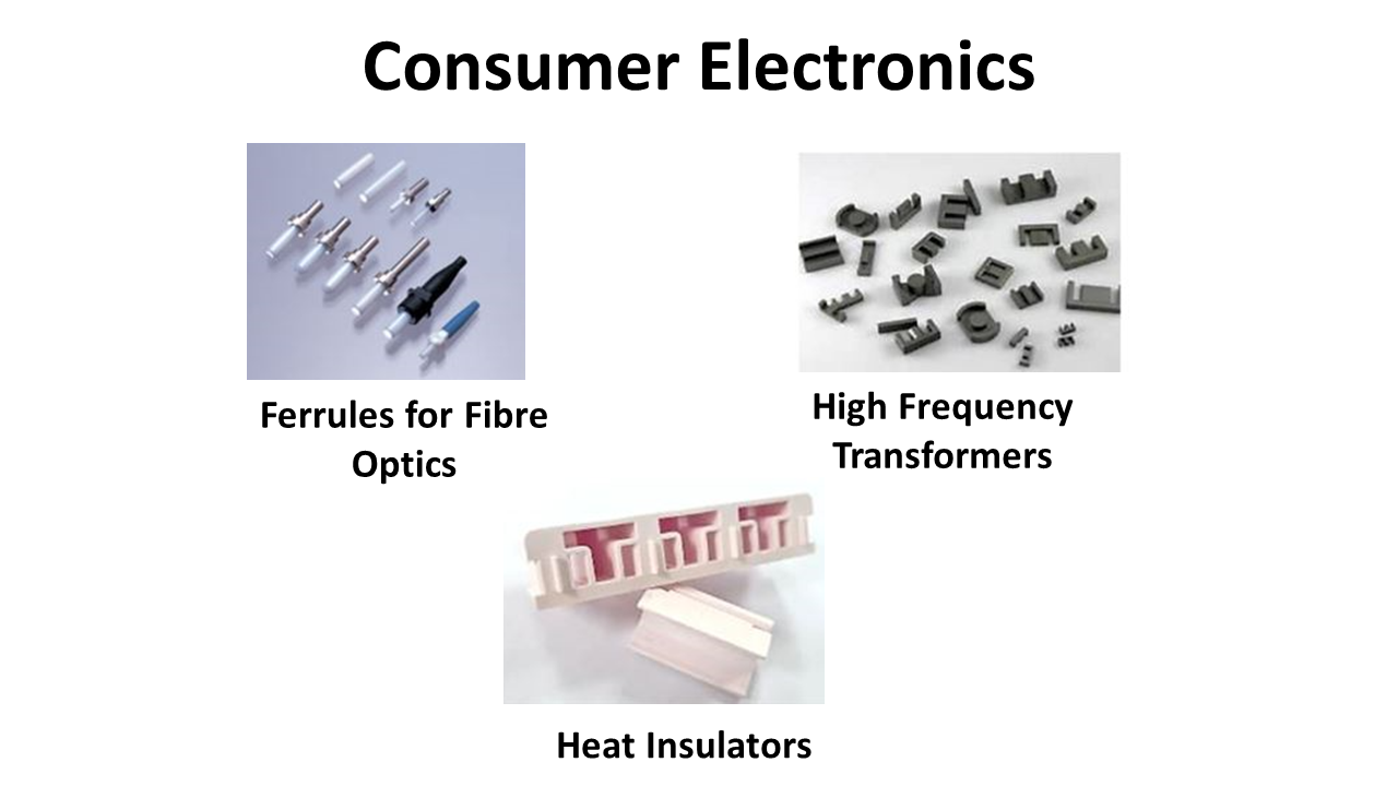Typical Normal applications are ceramic capacitors, heat insulators, ferrules for fiber optics.